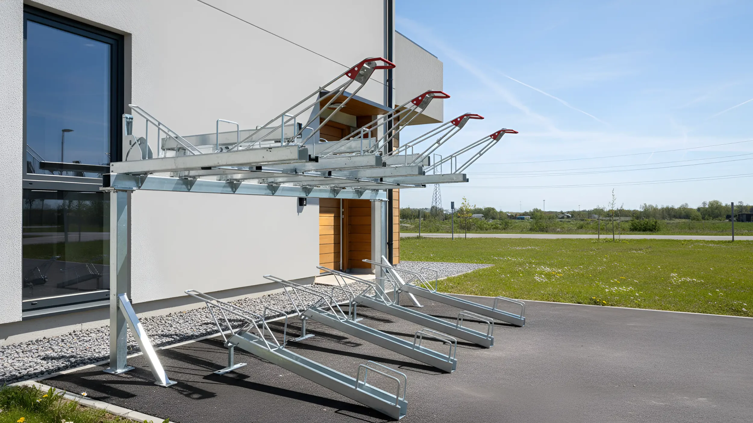 Lorsque l’optimisation de l’espace est primordiale, le Cyclift double la capacité de stationnement à surface égale grâce à son système à deux niveaux. L’accès au niveau supérieur est facilité par un vérin d’assistance, réduisant l’effort de levée et rendant l’usage accessible à tous. Disponible en modules de 4, 6, 8 ou 12 emplacements avec une finition en acier galvanisé, ce modèle est potentiellement éligible aux programmes de financement mobilité. La fabrication du Cyclift n’est pas réalisée en France, néanmoins Steelbox assure son suivi ainsi que son service en France.